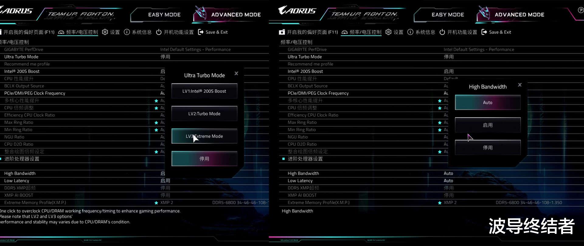当然,这张技嘉Z890 AORUS  ELITE DUO X 小雕仍然支持低延迟、高带宽的黑科技,只需要简单在BIOS里开启,就能得到比单开XMP更高的性能。而想体验更极限性能释放的朋友,可以在Ultra Turbo Mode里,开启LV2甚至是LV3的配置,不用再去自己调半天参数了。个人感觉它类似于X3D的鸡血2.0,或者IPO的升级版。