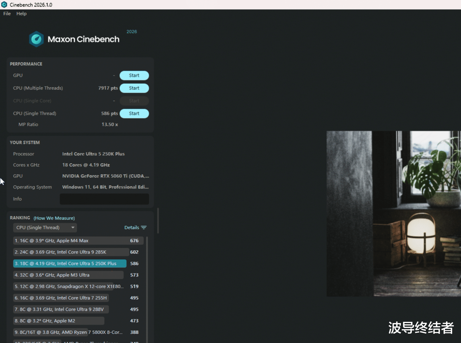 再来跑一下Cinebench的项目,在2024版本当中,单核得分141,多核得分1885。Cinebench 2026中,单核得分586分,多核得分7917分。最关键的是,在Ultra Turbo ModeLV3+XMP+内存黑科技全开的情况下,各种测试和烤机均十分稳定,所以没有什么特殊情况的话建议常开,白给的性能不要白不要。后面的测试就主要都以全开状态来跑了。