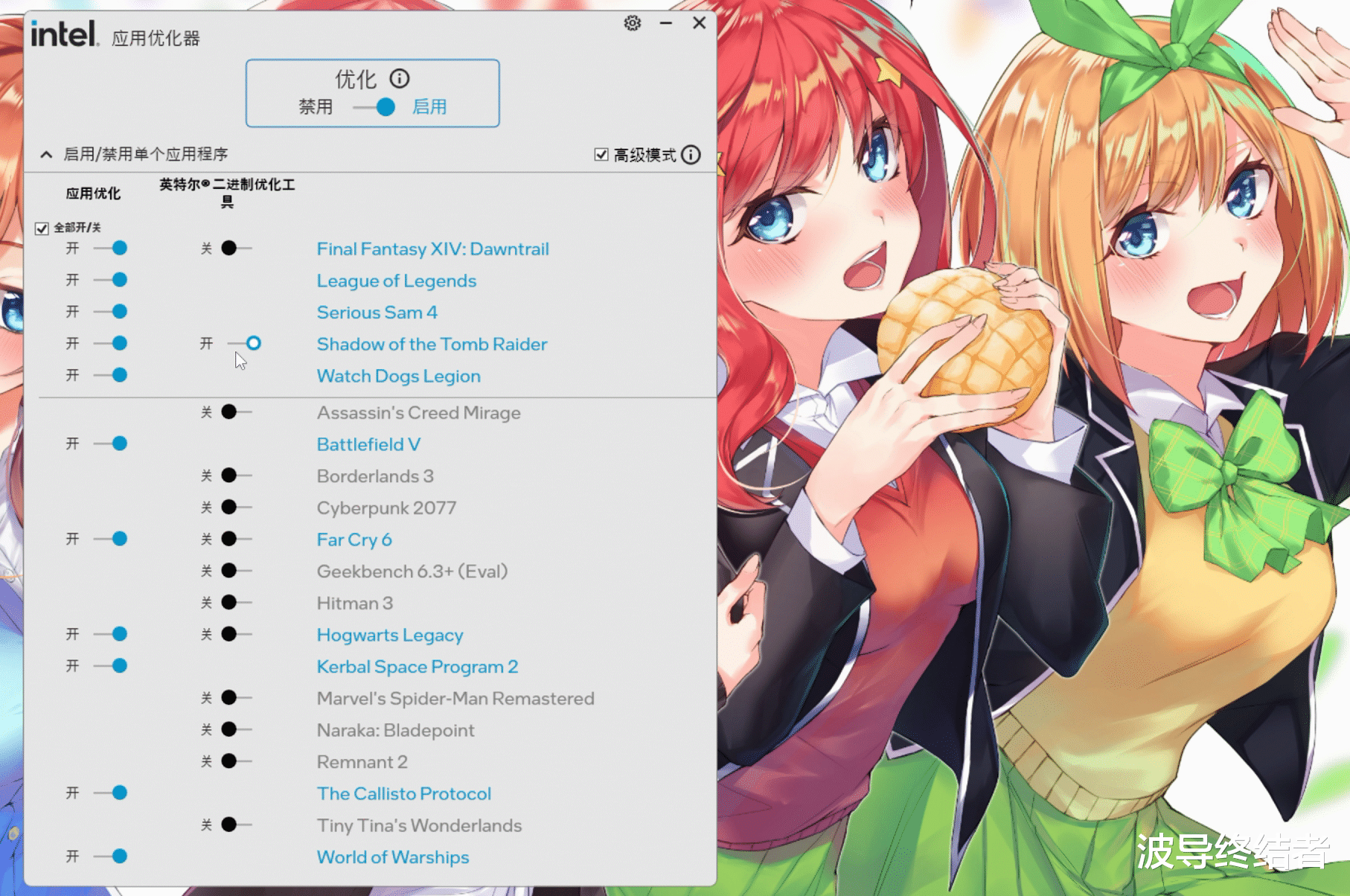 另外,Intel还给不少游戏做了应用优化和二进制优化。新游戏有不少,甚至连古墓丽影暗影也仍然支持。安装好相关的驱动和工具,界面上开启即可。