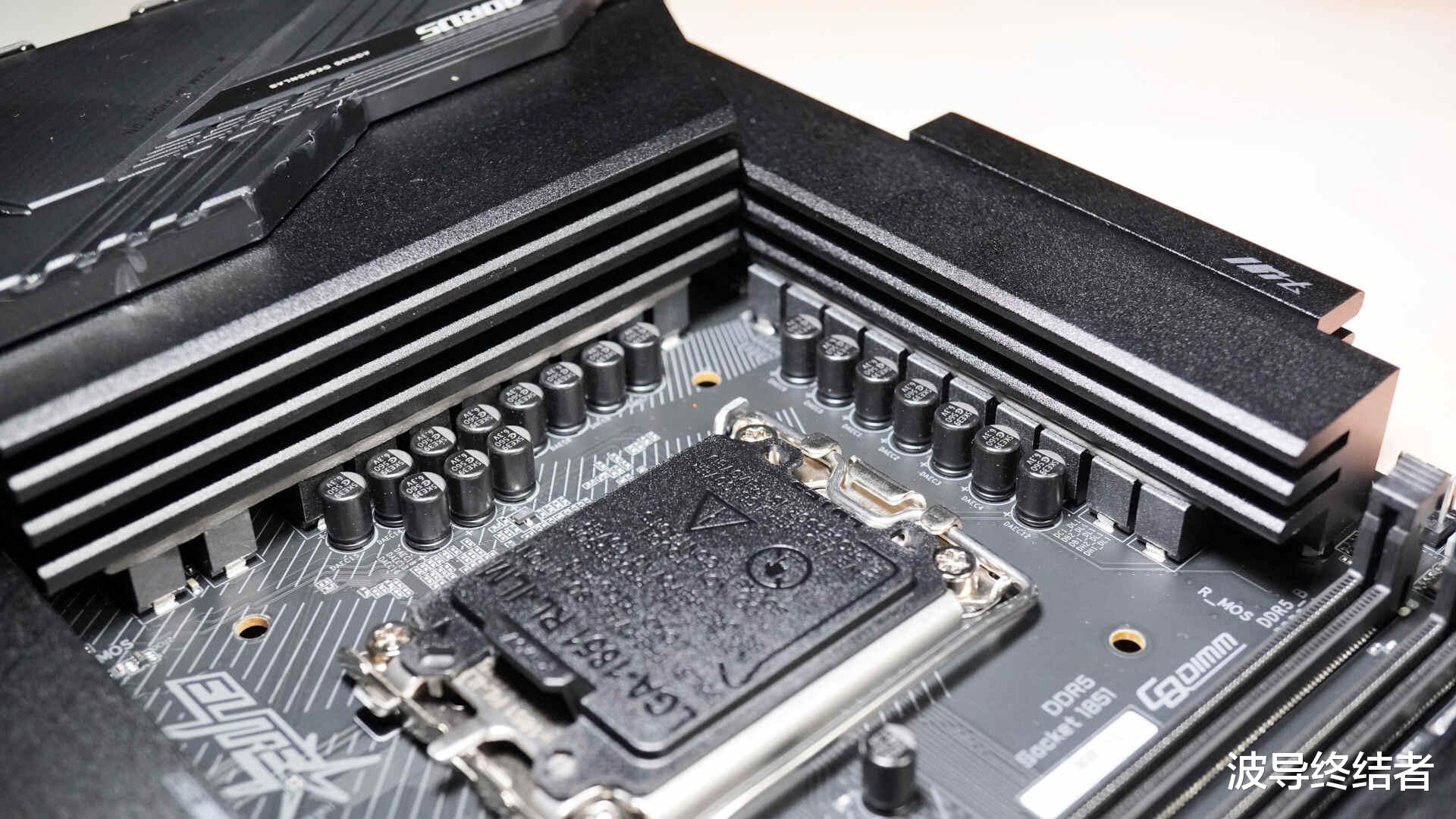 这张板子给我的第一个惊喜,是它的背板。因为这种高端旗舰板做工用料都非常厚重,在安装的时候,背部的焊点难免会对手有刮蹭或者刺伤。而这块板子直接做了全覆盖式的金属背板,不仅彻底解决了滴血认亲的问题,也进一步提升了主板的耐用性。