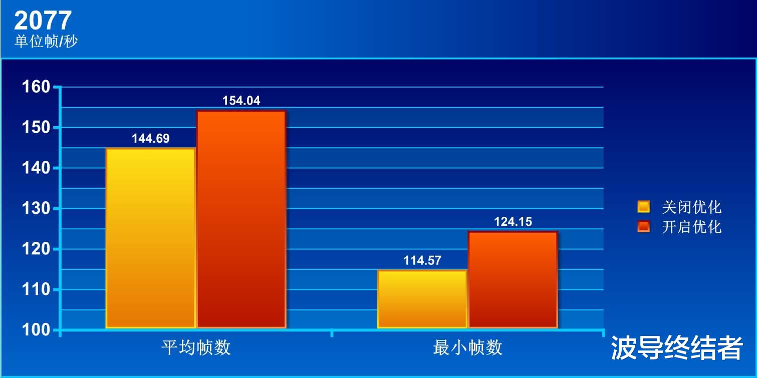 在持续更新的赛博朋克2077当中,目前最新的2.31版本,开启优化之前平均帧数144.69,最小帧数114.57,开启优化之后平均帧数154.04,最小帧数124.15。这从LV3到内存黑科技,再到二进制应用优化,每一项都能确实有效地提升整机性能和表现,越看性价比越高。