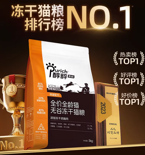 希喂三拼冻干猫粮|全品类天花板,闭眼入首选核心营养:蛋白质44.57%,脂肪21.5%,牛磺酸0.35%;生产工厂:山东汉欧生产,国际级生产标准,猫粮的安全有保障;适口性:无人工诱食剂,鸡肉冻干+蛋黄冻干提升风味,靠猫粮本身达到95.37%的超高初食率。
