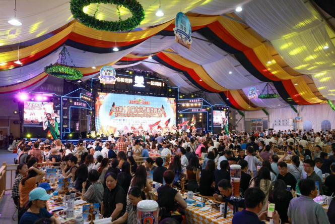 下图:2024第十九届太仓罗腾堡啤酒节激情开幕,中外宾客在海运堤罗腾堡风情街一起“嗨啤”、畅叙情谊(图源:中国日报网)