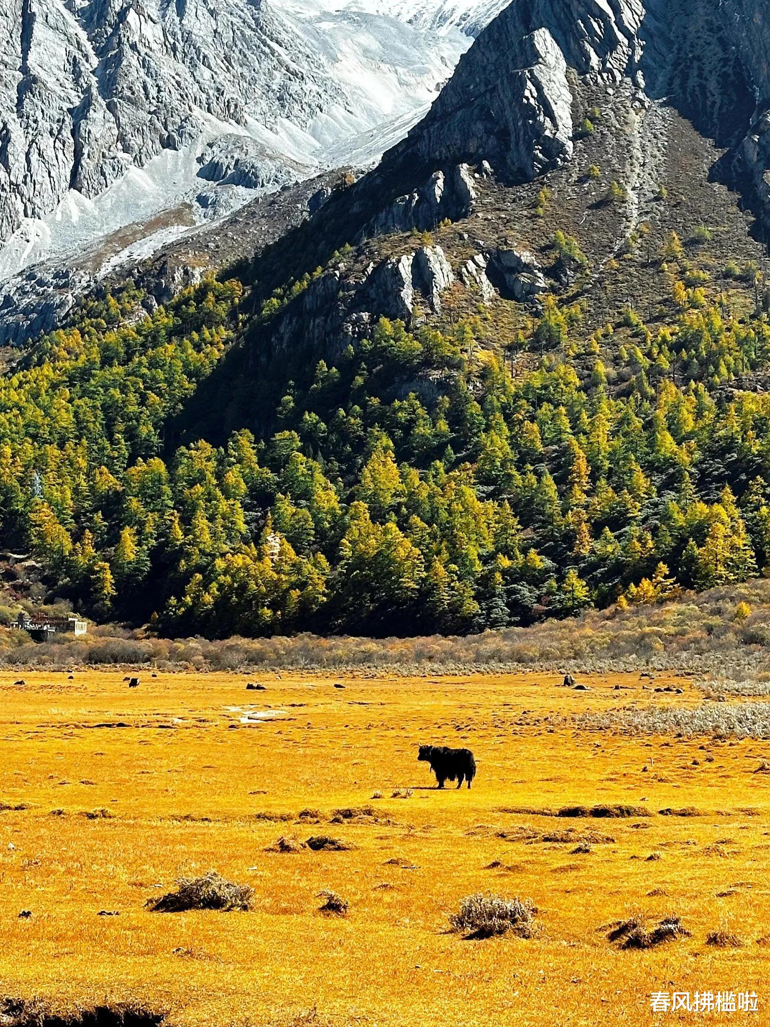 稻城亚丁:川西秋日终极幻想十月的稻城亚丁,红草地如火般绚烂,杨树林金黄耀眼,与洁白的雪山、湛蓝的湖泊形成强烈对比。