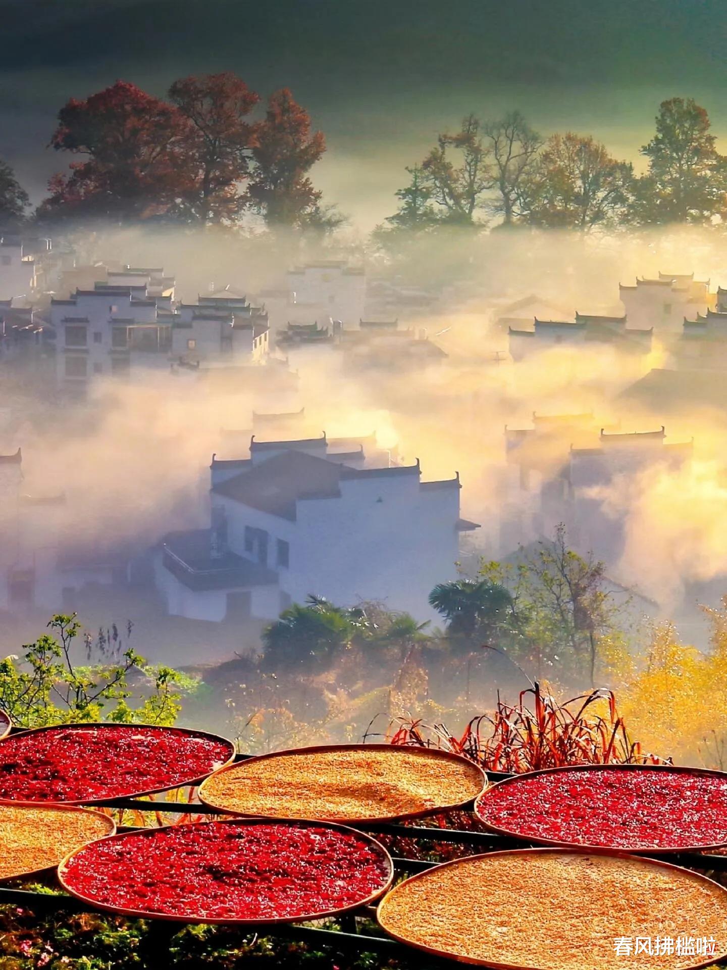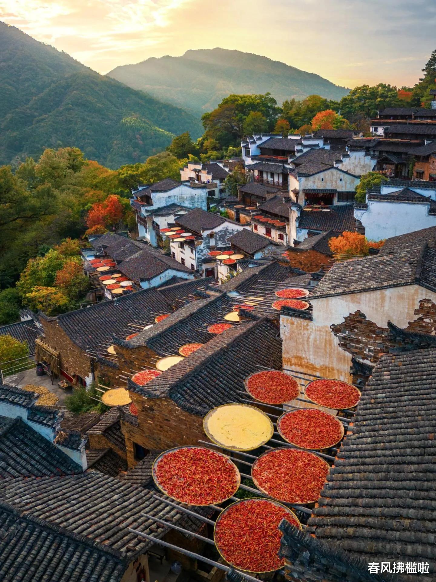 江西婺源:水墨画中的秋日诗篇十月下旬至十一月中旬,婺源的秋色呈现出独特的田园诗意。晨雾缭绕的古村落、火红的辣椒、金黄的皇菊、晾晒的秋粮,构成了一幅幅生动的晒秋图景。