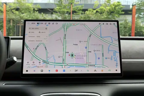 打开无框车门坐进驾驶舱,内饰的升级幅度真的让我眼前一亮。现款车型的三联屏设计被17.3英寸2.8K悬浮式中控屏取代,6mm的超窄边框让屏幕视觉效果十分震撼。实际操作起来,高通骁龙8295芯片的性能表现也很出色,同时开启导航、音乐和空调控制,界面切换依旧丝滑流畅,完全没有卡顿感。