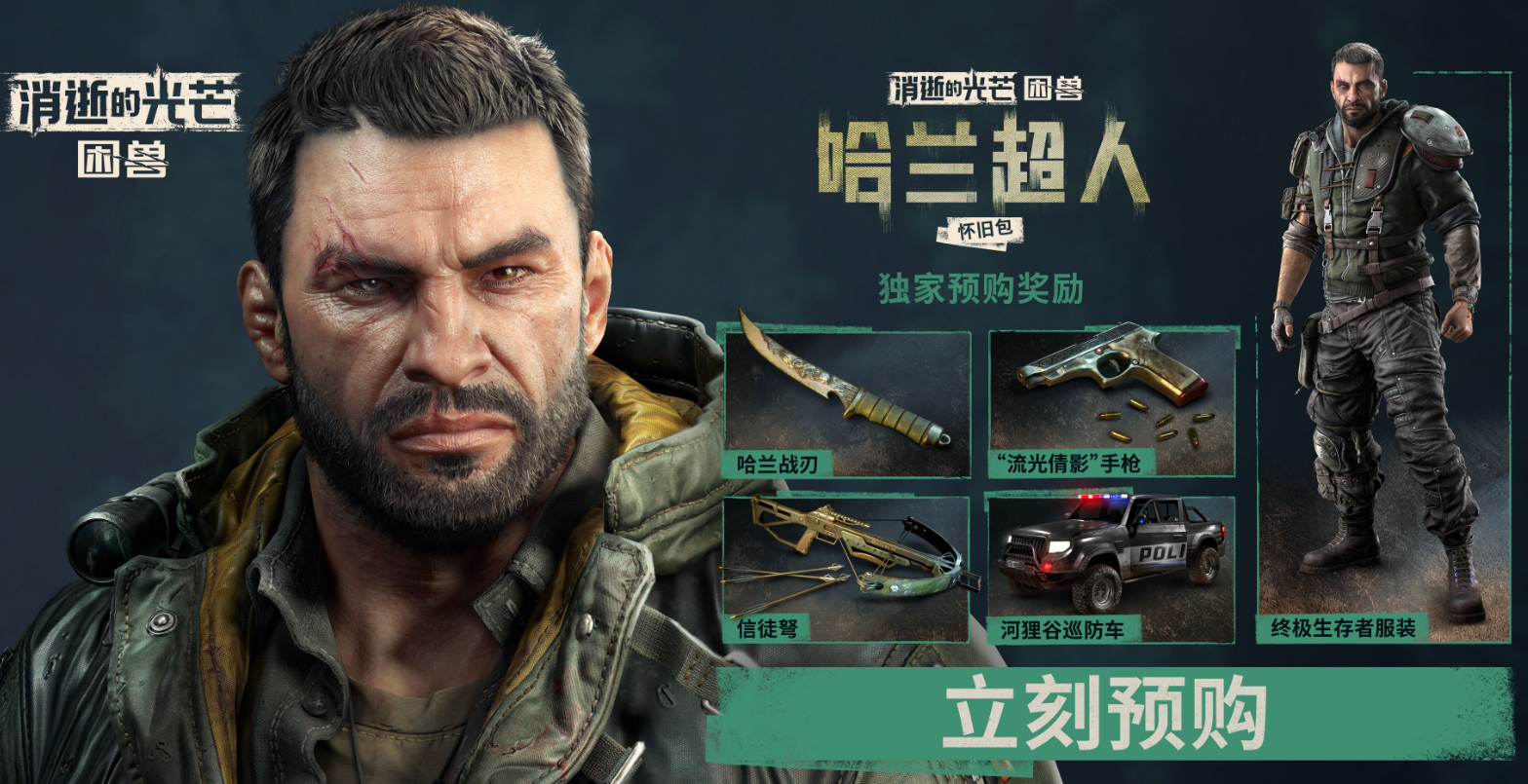二、预购必囤!“哈兰超人怀旧包”:情怀+实用的“新手外挂”现在预购《困兽》,即可免费解锁“哈兰超人怀旧包”。这个以系列经典地图“哈兰”命名的道具包,不仅是向初代《消逝的光芒》的致敬,更是新手玩家的“前期神装”——所有道具均能大幅提升生存效率,甚至直接改变开局节奏!