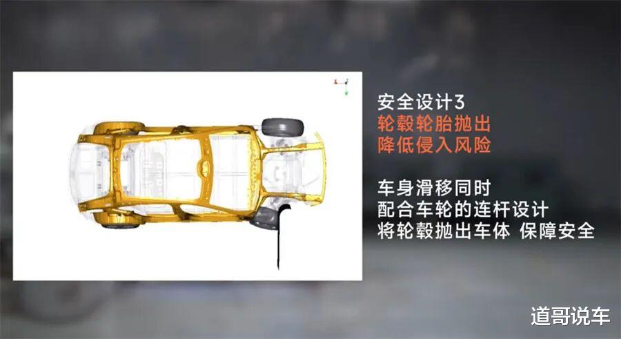 “25%小重叠率碰撞时的确有很多车型前轮是脱落的,尤其是现在轻量化底盘,很多前悬横臂是铸铝件,容易断裂而造成碰撞侧前轮脱落。但是这个脱落用不着专门设计,即便不脱落,前轮也挤不动A柱和门槛”,某知名高校车辆工程教授对《财圈社&道哥说车》编辑表示。