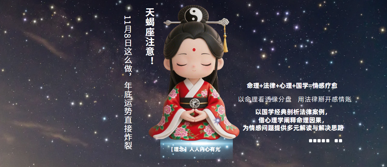 咋滴?又不认识了?唉—行吧行吧,我是以国学经典剖析法律案例,借心理学阐释命理因果,为情感问题提供多元解读与解决思路的东北妹纸澄钰吖!