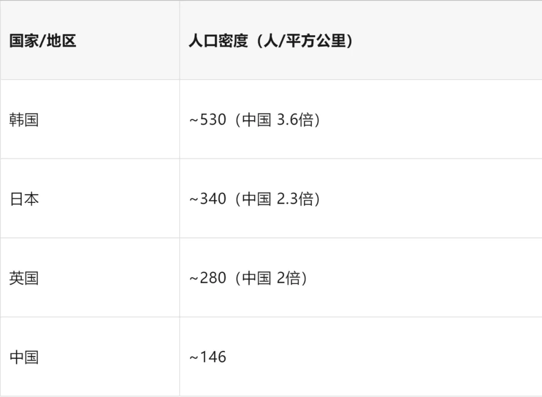 台湾宜居土地占30%日本/韩国20%—30%中国更高城市人口密度也类似,北京、广州、深圳均低于东京与首尔。