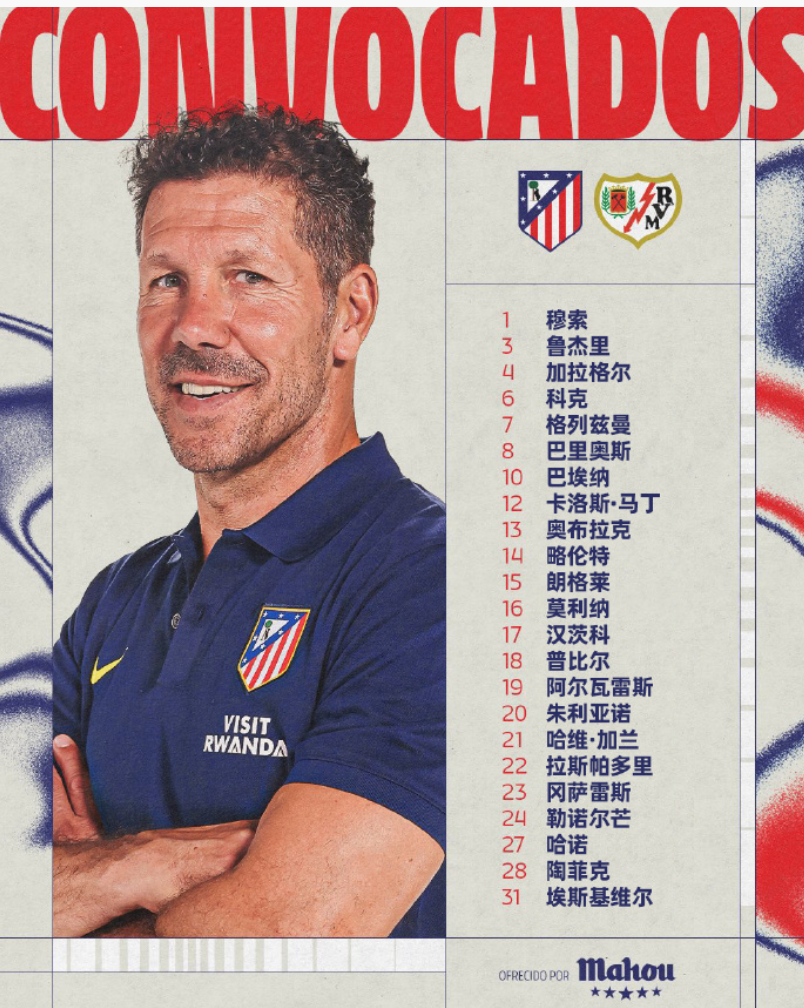 西甲第6轮,马德里竞技坐镇利雅得航空大都会,对阵巴列卡诺。