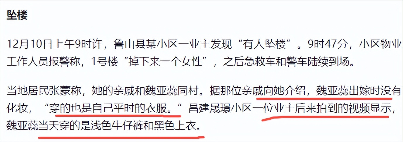 更让人寒心的是,她坠楼后,遗体在一楼院落里停留了近一天。一楼业主以 “新房见血影响房价” 为由拒绝移动,要求赔偿,而她的父母和婆家,在最初的慌乱中竟也没第一时间妥善处理,任由舆论在网上发酵,各种猜测铺天盖地。魏亚蕊坠楼后遗体滞留近一天,相关方的反应更添心寒。