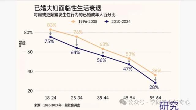 可怕的是:连已婚夫妻也开始“摆烂”了如果说年轻人不做还能理解,毕竟社恐+沉迷电子产品,那结婚的人总该稳定吧?结果偏偏不是这样——美国婚姻里的性生活也在集体缩水。