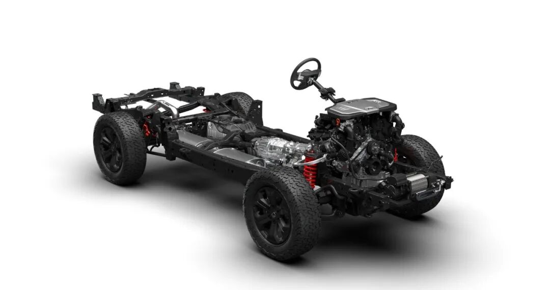 V6火炮升级博格华纳高性能四驱分动器,承载扭矩提升至3300N·m,4L速比由2.48提升为2.64,脱困能力更强。加大前后桥速比,速比达4.55,爬坡能力更强。大幅提升传动轴、车架、悬架等底盘强度,面对飞车等极限越野场景更从容。标配前后桥电控式差速锁、蠕行模式、坦克转弯、6种全地形驾驶模式等,能轻松应对各种挑战,征伐四方无阻。配备越野专家模式,可以一键关闭电子辅助设备,满足越野老炮驾驶乐趣。
