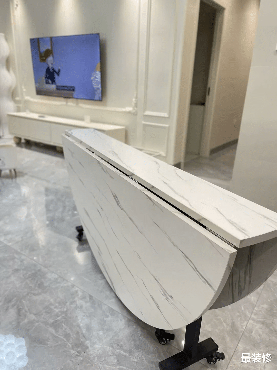 是不是很多的小户型的小伙伴,都是会选择折叠餐桌,觉得平时可以用折叠餐桌吃饭,等来个客人之后,也是可以直接把折叠餐桌打开,来人也不用担心桌子小。