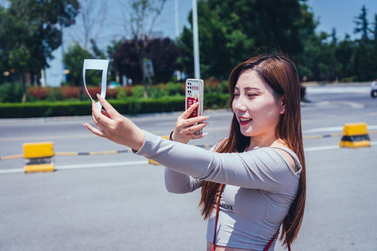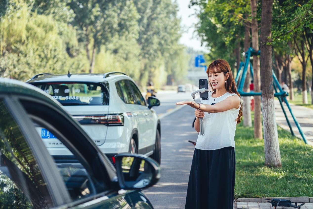 大众贴心的安排了打卡环节,当然了摄影师没有给网红小姐姐开美颜。