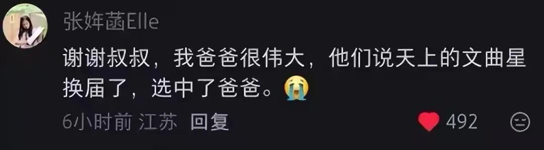 这个孩子没有嚎啕大哭,她只是用稚嫩却平静的语气,引用网友的话安慰众人:“天上的文曲星换届了,选中了爸爸。”她说起父亲创业时,无房可住,只能在会议室打地铺;说起他成功后,依然骑电动车接送她,穿普通的衣服。她的叙述里没有悲伤的形容词,只有事实。恰恰是这些平淡的事实,勾勒出一个父亲最清晰的轮廓,也让所有人的悲恸,有了确切的形状。