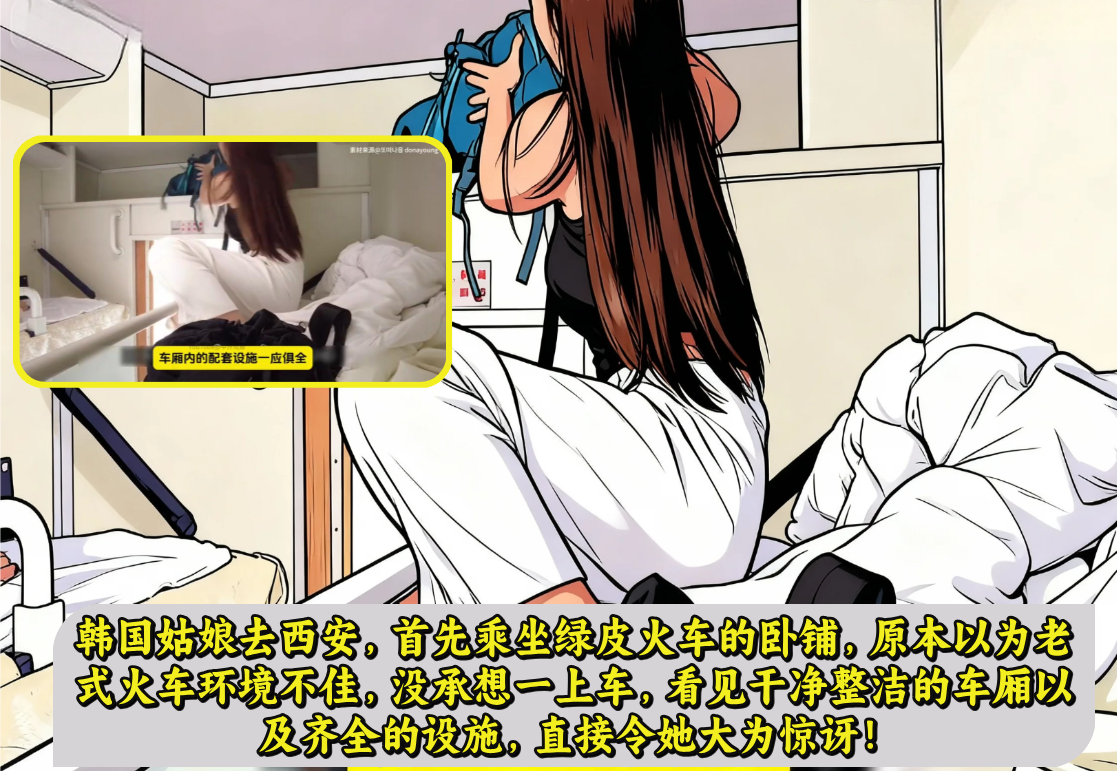 韩国姑娘打算去西安,却没有直达的火车,第一段得乘坐绿皮火车,原本以为老式火车环境不佳,没承想一上车,看见干净整洁的车厢以及齐全的设施,直接令她大为惊讶,简单整理后,姑娘躺下就睡,等醒来后中转站到了!第二段行程换成高铁二等座,环境那可是相当舒服,比卧铺宽敞不少,座椅角度能随意调整,一直到深夜十一点多,终于到达西安。