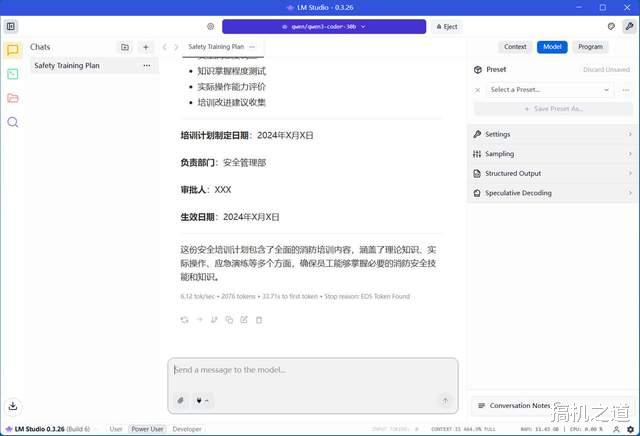 接着再挑战一下更高级别的大模型——Qwen3-30B-a3b-2507,由于该模型容量更大,所以对显存的需求更高,如果是独显的话,RTX 5080的16GB显存也很容易爆掉,但Dell Pro 14 Plus的NPU因为可以共享系统的32GB内存,所以可以看成它有32GB的显存,使用上限反而更高。