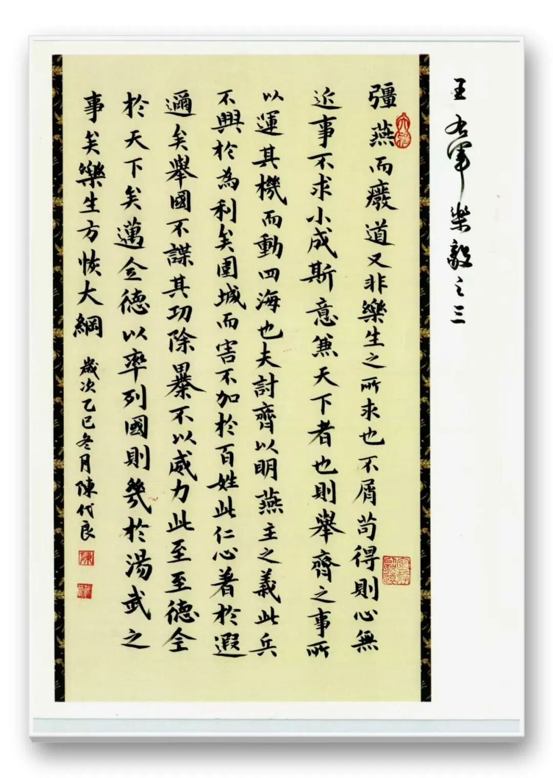 先生书作的第一重境界,在于刚柔相济的笔墨韵律。硬笔之“刚”,见于起收转折的斩截利落,如寒剑破锋,无半分滞涩;笔力之“柔”,藏在行笔的婉转流转,似流云拂岫,暗蓄圆融。观其点画,短笔如顽石卧坡,沉实稳健;长笔如松枝垂露,劲挺含姿。结体之上,既守唐楷的端严规整,字字如亭榭列阵,主次分明;又取汉隶的宽博疏朗,通篇似流水寻溪,疏密有致。墨色的浓淡枯润更见匠心,浓处如积云覆岭,厚重雄浑;淡处如薄雾笼川,空灵悠远,静态的文字便在这刚柔相济、虚实相生间,生出了灵动的呼吸与生命。这份笔墨功力,非数十年临池不辍不能成,是先生对传统笔墨精髓的深刻体悟,亦是硬笔材质特性的极致发挥。