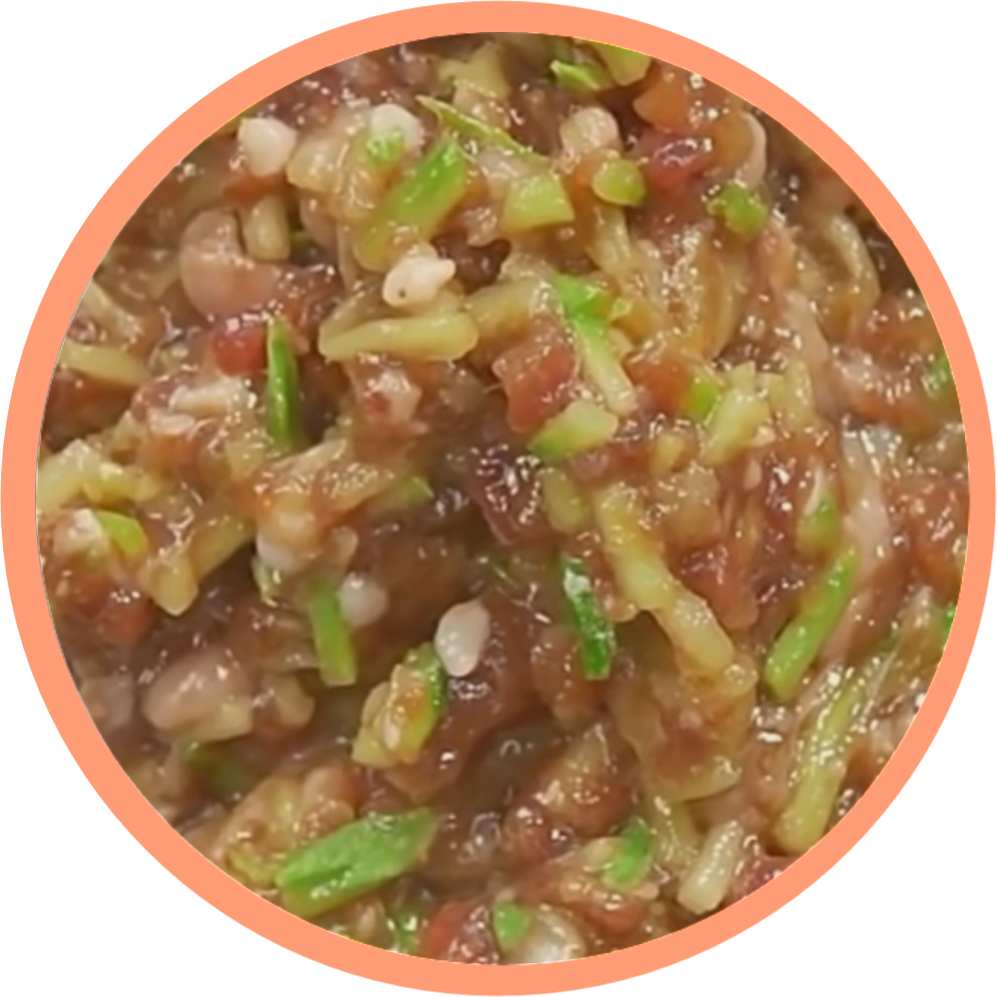 羊肉馅加入葱姜末、盐、孜然粉、生抽拌匀,分三次加葱姜水,朝一个方向搅至粘稠上劲,西葫芦洗净后擦成细丝,加一勺盐腌10分钟杀水,挤干后切碎,然后把西葫芦碎和羊肉馅拌匀,最后可以加点香油,轻轻一拌即可。