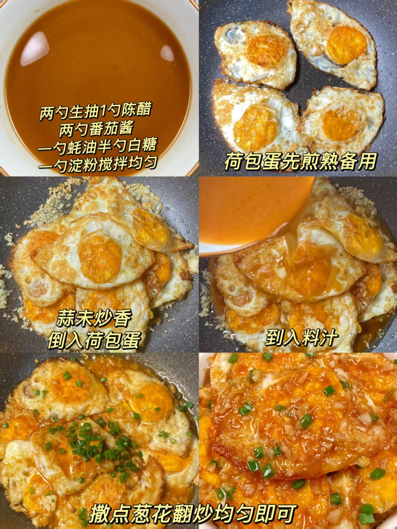 荷包蛋也能做出下饭硬菜!外焦里嫩的荷包蛋裹满酸甜浓郁的酱汁,一口下去,蛋白蓬松、蛋黄香浓,酸甜味超开胃,配米饭能多吃一碗~