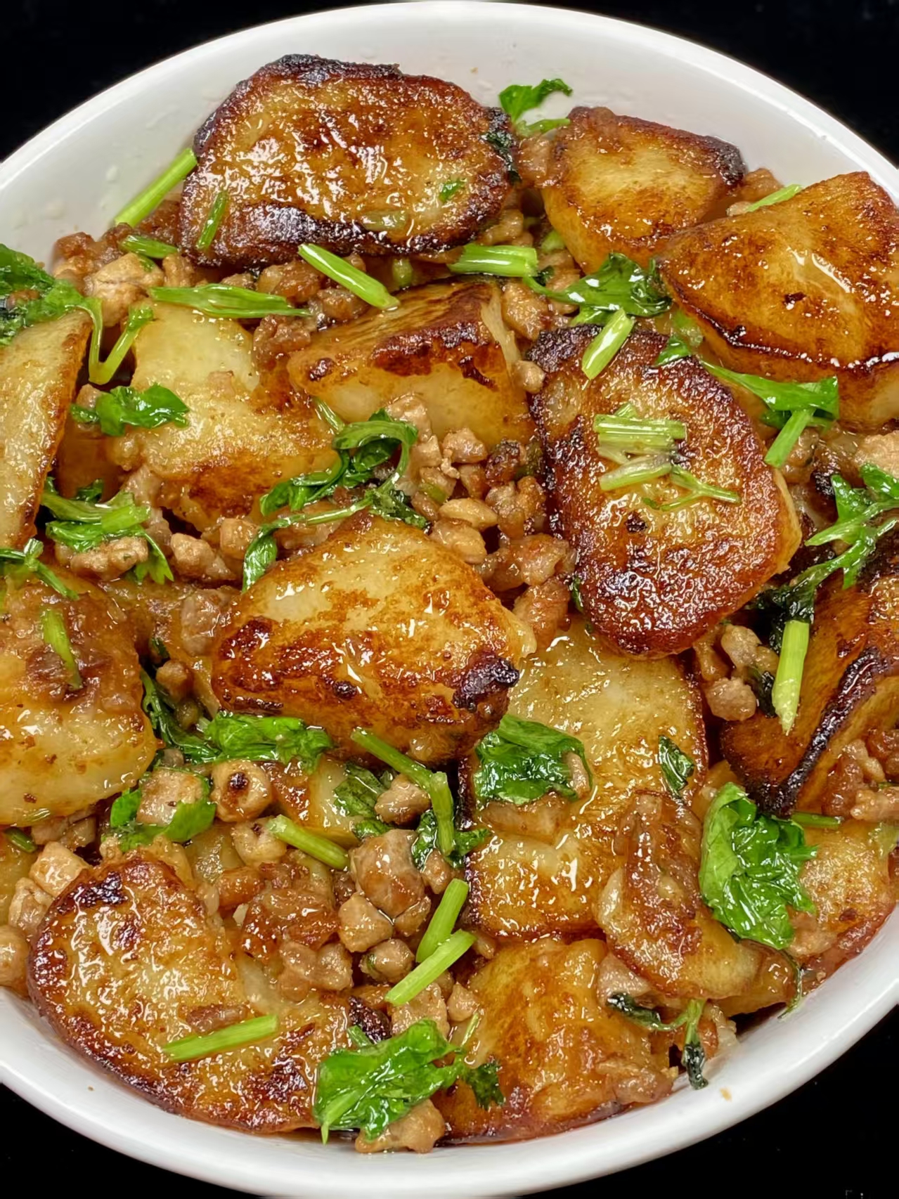 秋冬就爱吃点软糯的!这道香菜土豆泥,土豆绵密、肉末鲜香,搭配香菜的独特香味,咸香入味,拌米饭、配面条都超绝,做法简单还顶饱~