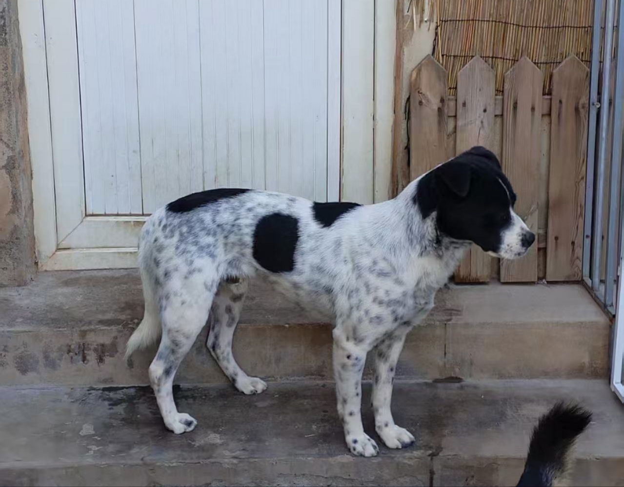爱犬名叫“大斑”,黑白色田园犬,公犬,2岁左右,约30斤重。
