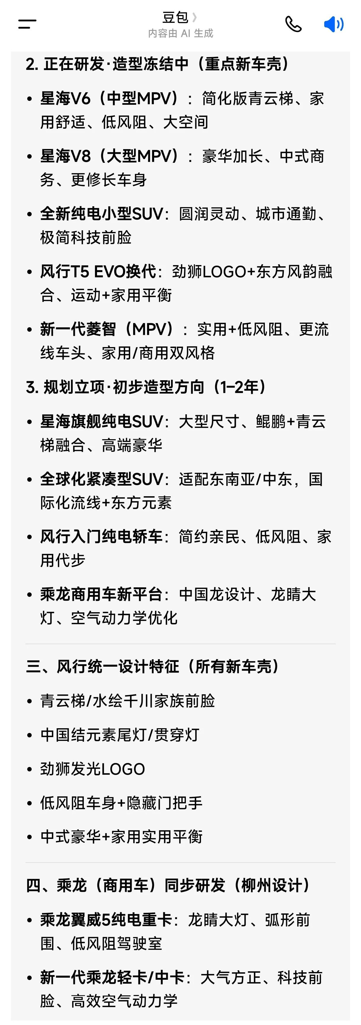 - 在研冻结:星海V6/V8中型/大型MPV、全新纯电小型SUV、T5 EVO换代、新一代菱智