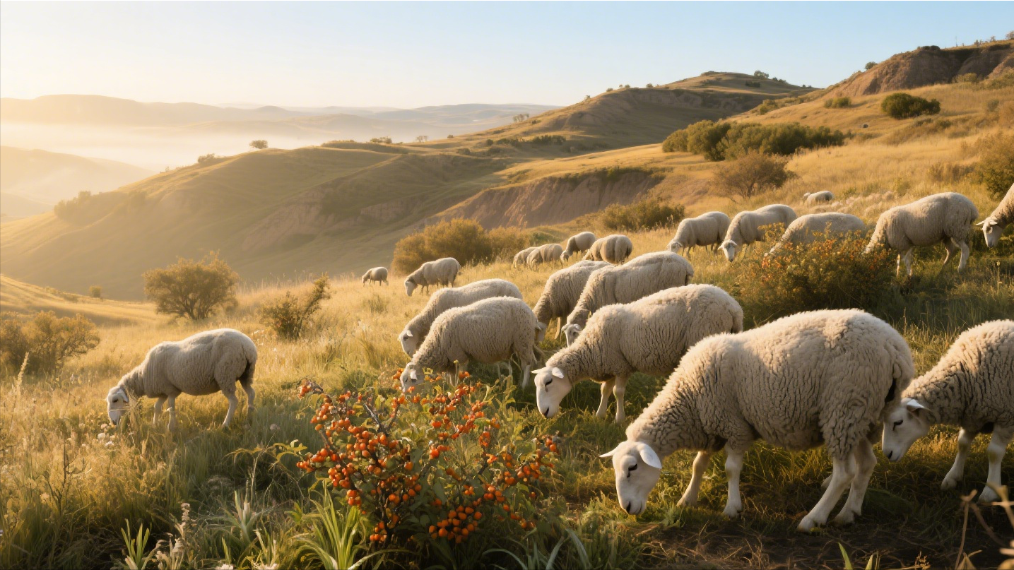 右玉的羊肉,生来就带着 “天时地利” 的偏爱。这里地处晋蒙交界,常年被清爽的季风拂过,昼夜温差大,光照充足。漫山遍野的植被,是羊儿们天然的 “餐桌”:沙棘、野葱、苜蓿、百里香…… 这些在别处难得一见的山野草木,成了羊儿们每日自由采食的 “珍馐”。它们踩着松软的黄土,在山坡上奔跑、跳跃,呼吸着带着草木清香的空气,喝着山间流淌的清冽泉水。这般 “散养式” 的生长,让右玉羊的肉质自带一股纯净的底色,没有一丝杂味,只留下食材本身最本真的鲜美。
