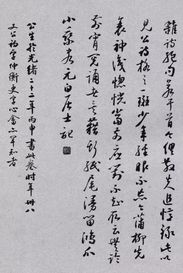 此作为启功先生跋《溥儒草书自作诗卷》,不仅叙述详而多珍闻,书法也同样妙不可言。溥心畲(yú,1896-1963),原名爱新觉罗·溥儒,字心畲,清恭亲王奕欣之孙,曾留学德国,诗文书画皆有成就,与张大千有"南张北溥"之誉,又与吴湖帆并称"南吴北溥"之称。此跋虽启功笔法,但更显工稳,晋韵浓郁,比如首字“右”,若单独看甚至看不出是启功所书。
