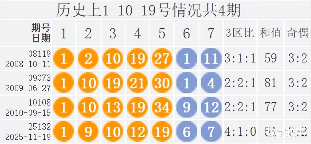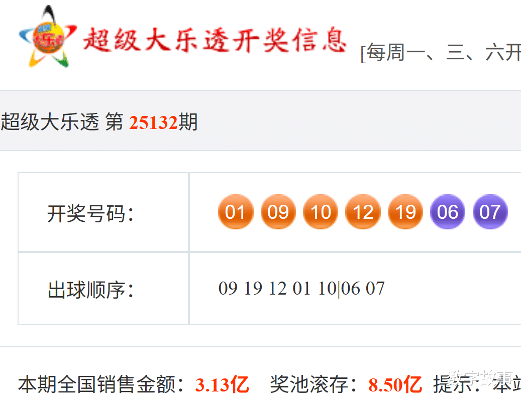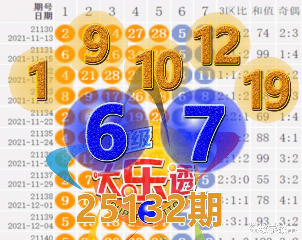 大乐透25132期开奖结果及中奖情况:出奖时间: 2025-11-19 星期三 前区号:1-9-10-12-19后区号:6-7大乐透前区隔期下落:1前区奇偶比:3:2 前区和值:51前区跨度:18 三区比:4:1:0连号: 9-10