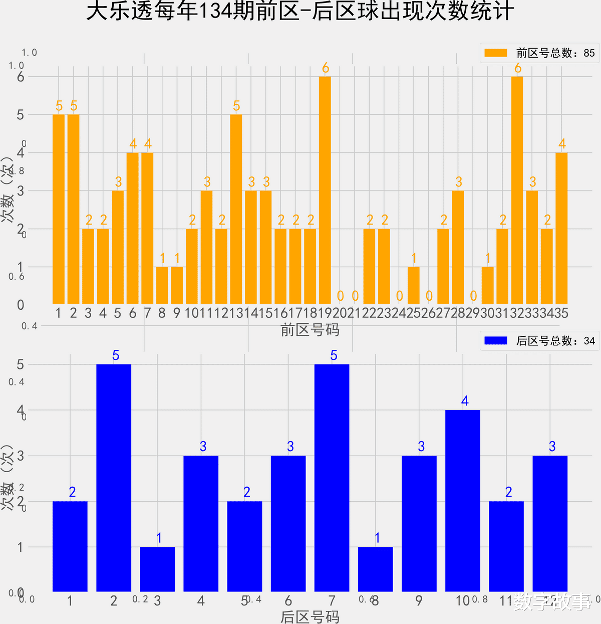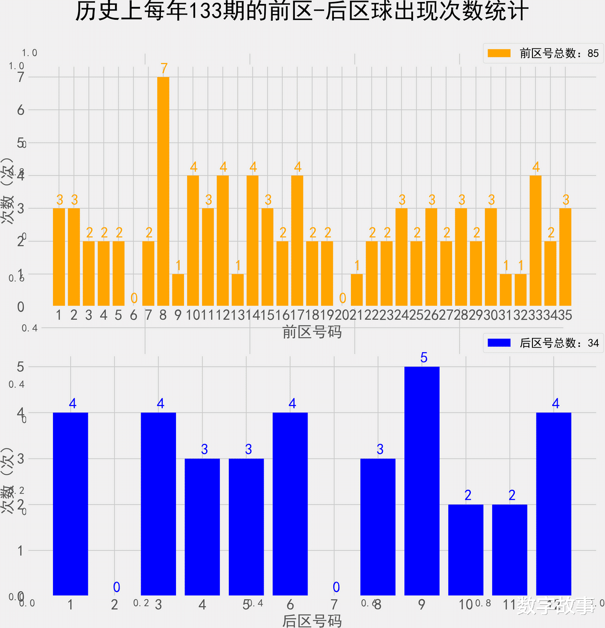 统计每年133期的样本数据: 85个前区号 34个后区号