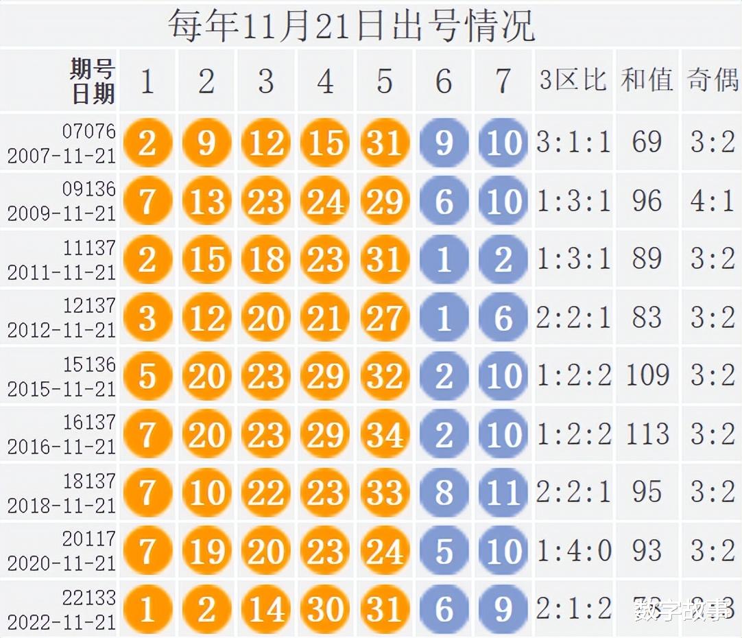 大乐透历史上的今天2025-11-21 星期五 大乐透不开奖每年11月21日出号情况: