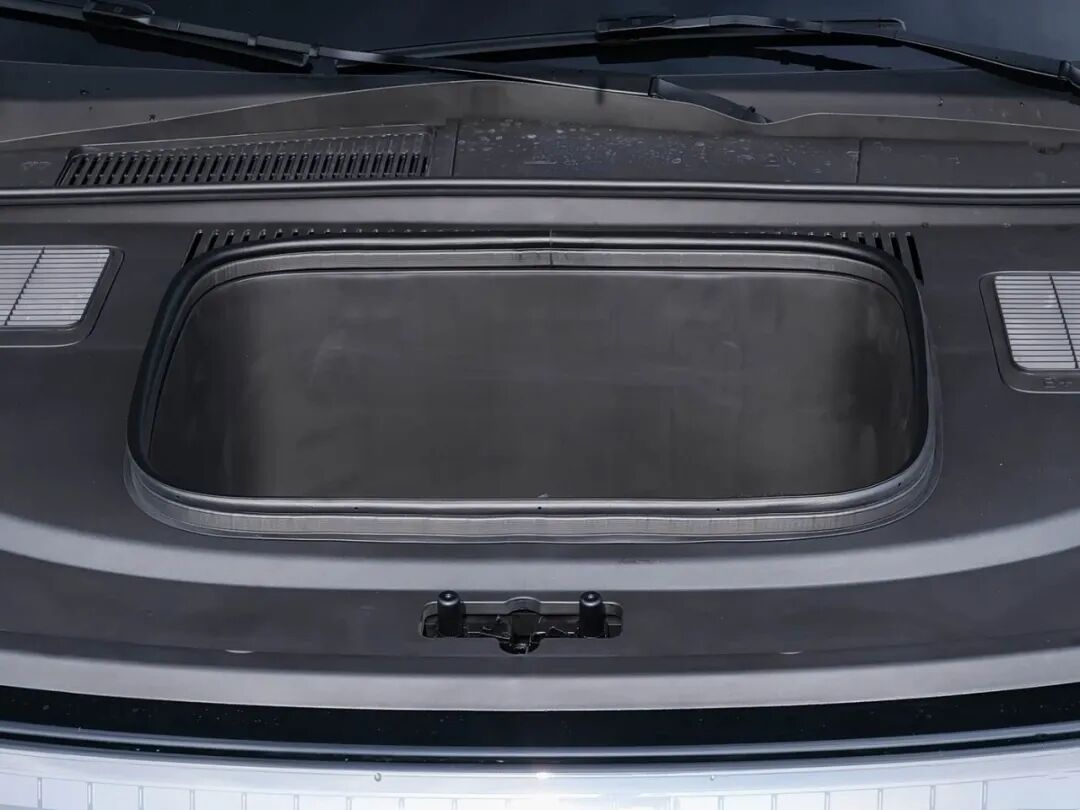 车身尾部,顶部配备高扰流板,尾窗的倾斜度是比较大,贯穿式尾灯,尾部使用多线条。纯电/增程双版本均采用隐藏式排气布局。