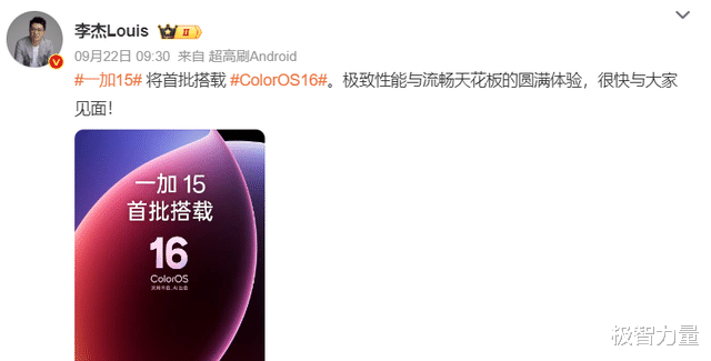 其他配置方面,一加15将搭载高通新一代的骁龙旗舰芯片,屏幕则是和京东方联合研发的1.5K 165Hz高刷屏幕。根据相关信息,该屏幕在显示效果和护眼等关键元素上,或看齐iPhone 17 Pro Max。另外,该机首批搭载ColorOS 16系统。