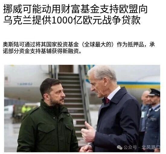 欧盟几乎毫无办法,这几天《泰晤士报》报道称,挪威可能会动用高达1.8万亿欧元的主权财富基金为担保,向乌克兰提供1000亿欧元的俄罗斯冻结资产。