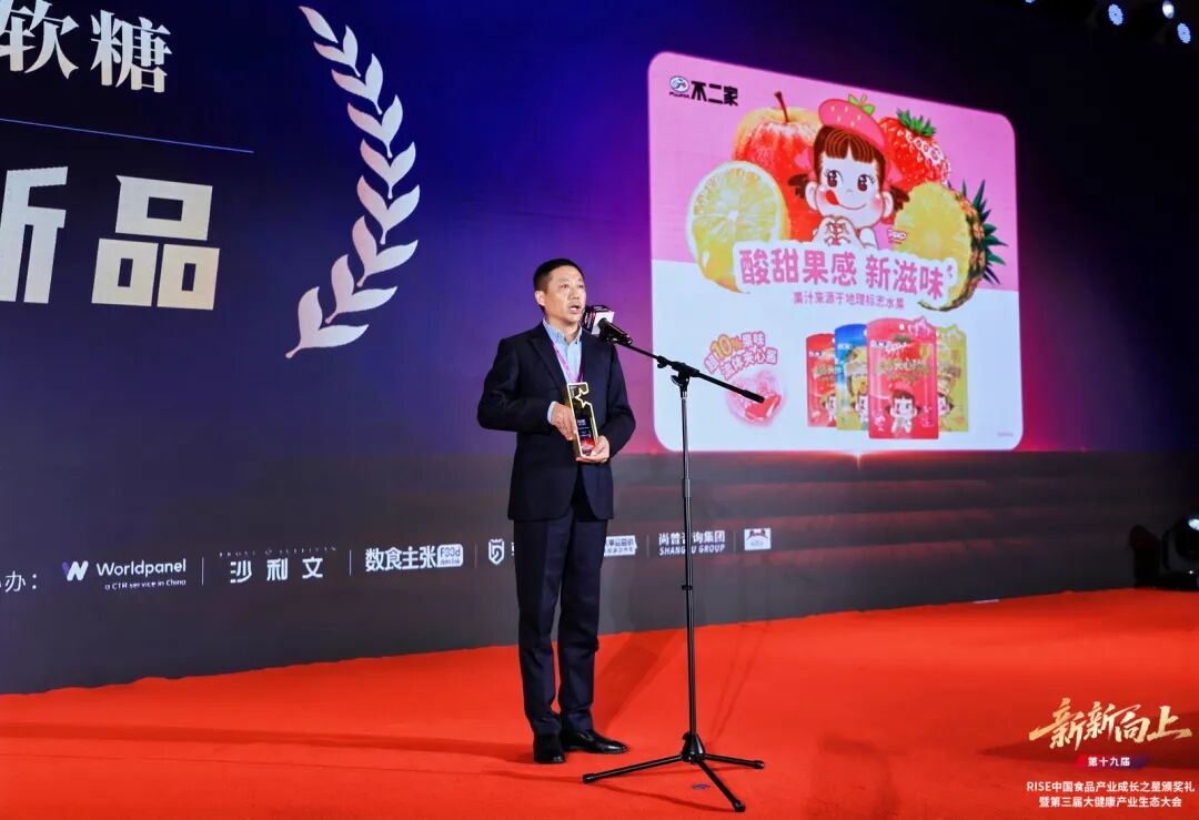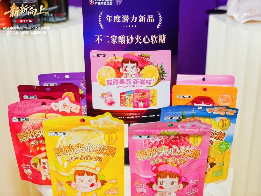 10月13日,在南京举办的“新新向上——第十九届RISE成长之星颁奖礼暨第三届大健康产业生态大会”上,不二家酸砂夹心软糖凭借其卓越的产品创新力与市场潜力,成功斩获“年度潜力新品奖”。