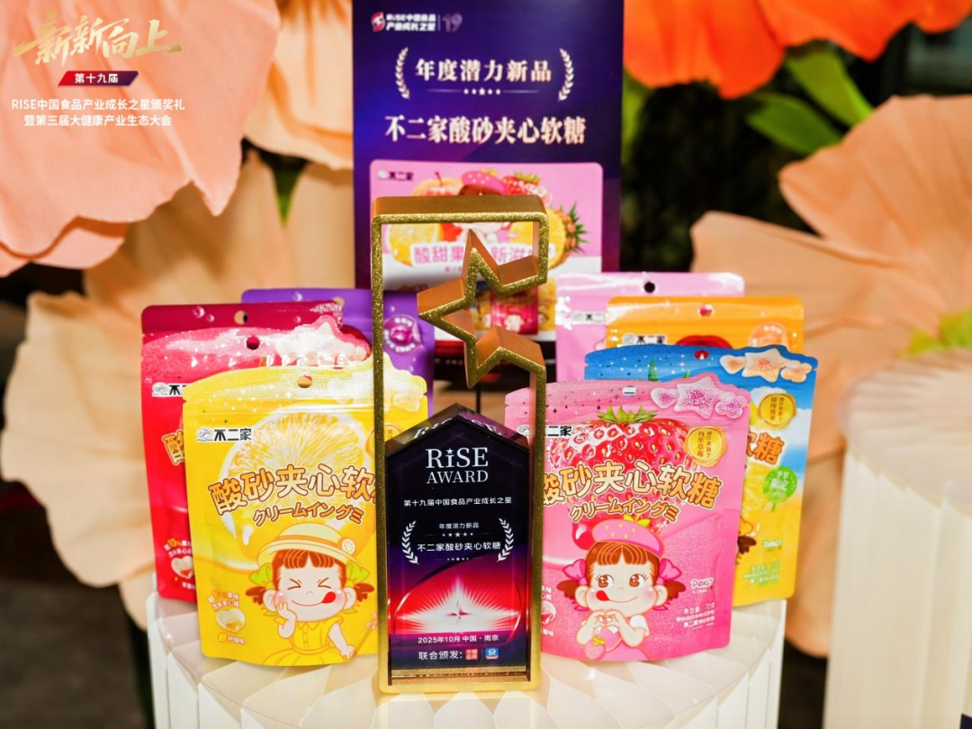 此次荣获RISE成长之星“年度潜力新品奖”,不仅是对不二家酸砂夹心软糖这一单品的肯定,更是对不二家“价值创新”路径的认可。在糖果行业迈向高质量发展阶段的今天,不二家正以扎实的产品体系、精准的用户运营与持续的情感链接,逐步构建从“爆款产品”到“长效品牌”的竞争壁垒。