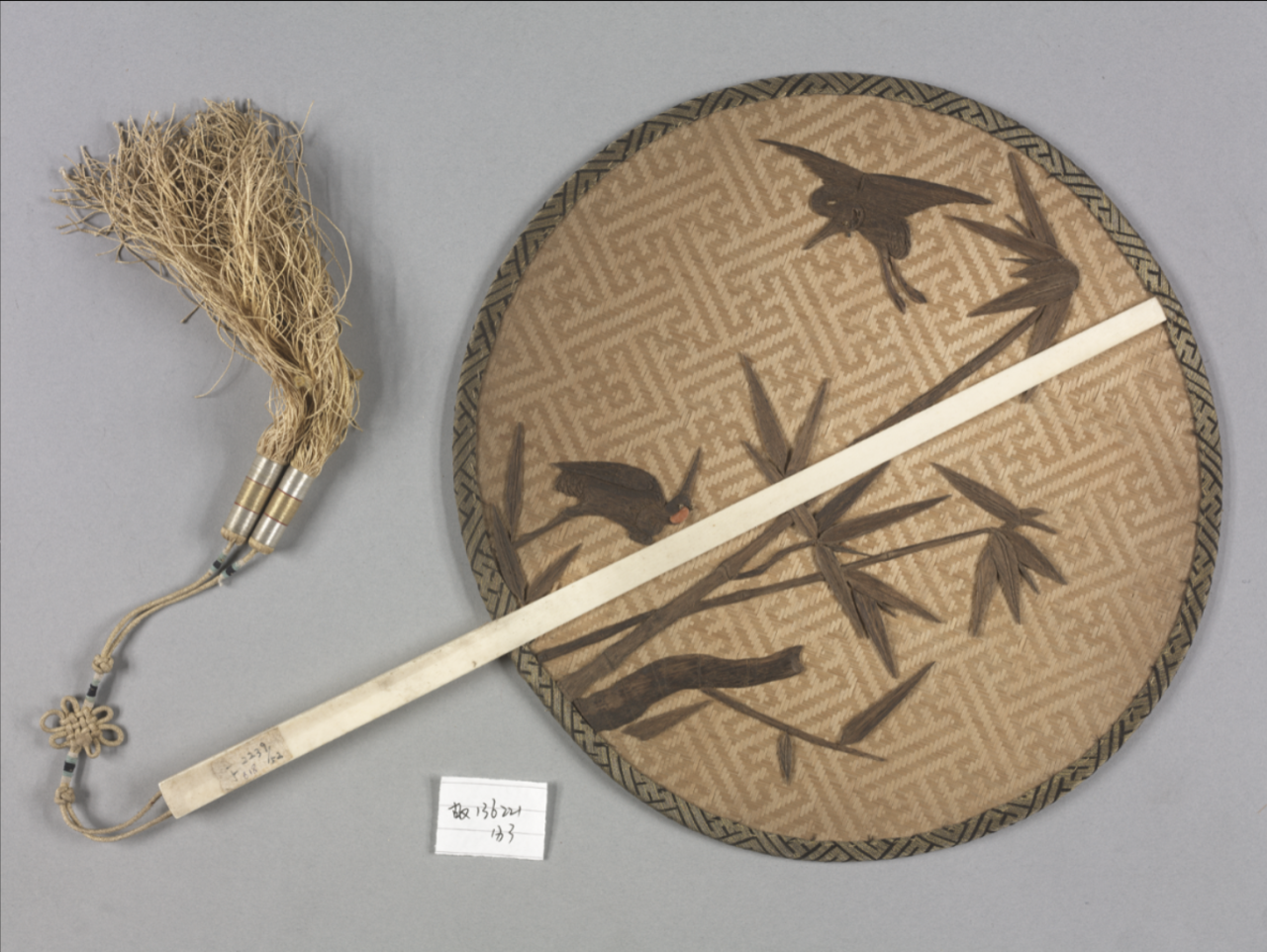 竹编席地嵌茄楠木花鸟图面象牙柄团扇 图源:故宫博物院官网