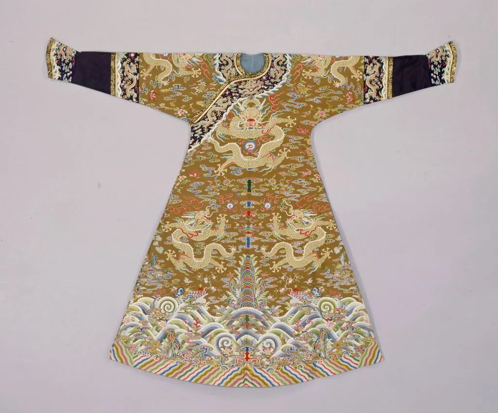 香色缂丝金龙夹龙袍:此为清代乾隆皇帝的嫔及皇子福晋所穿的龙袍 图源:故宫博物院官网