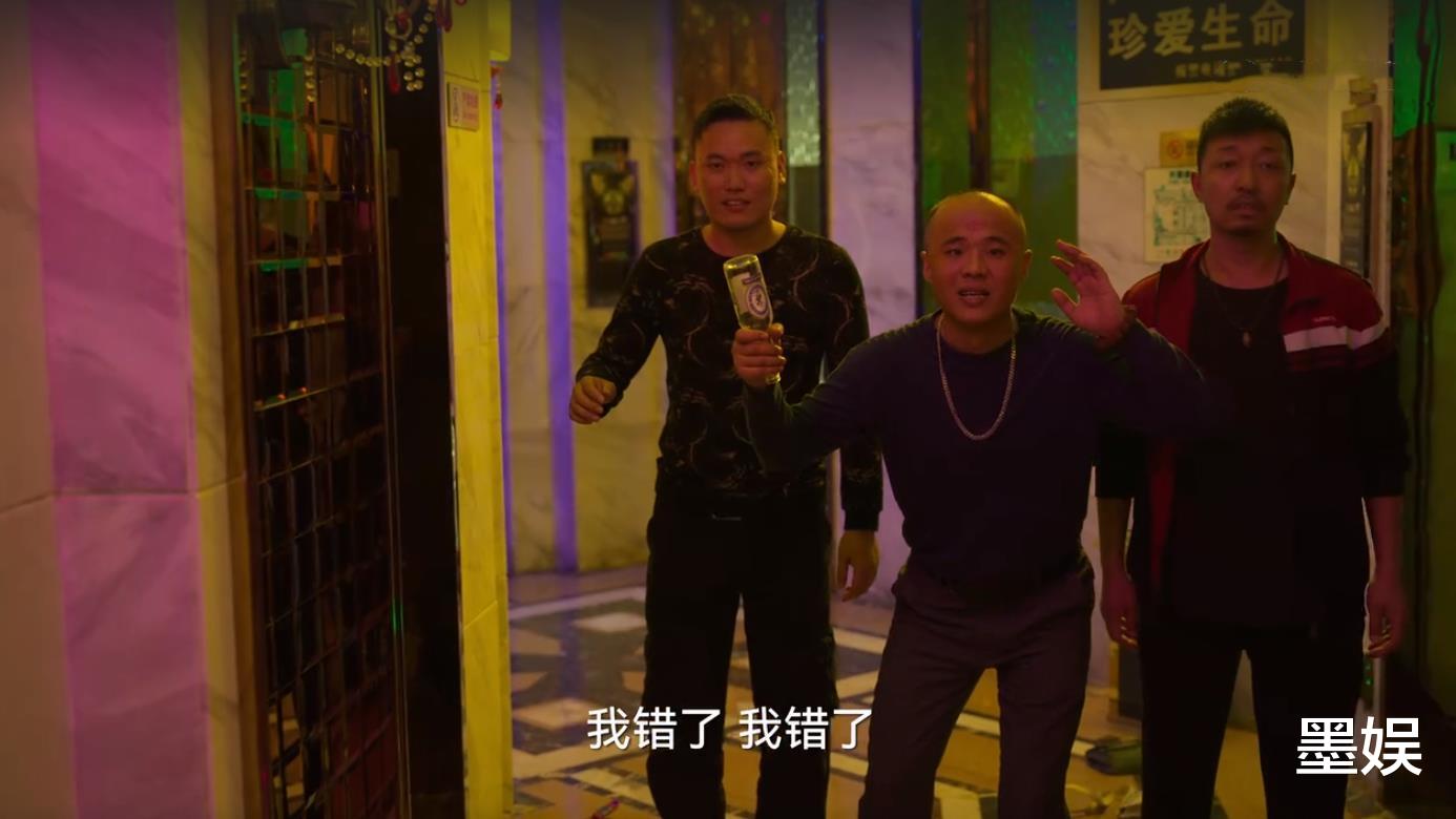还记得这几个小马仔吗,镜头是极少极少的。拿着酒瓶的光头,就是被孟钰扯住衣领的醉鬼。