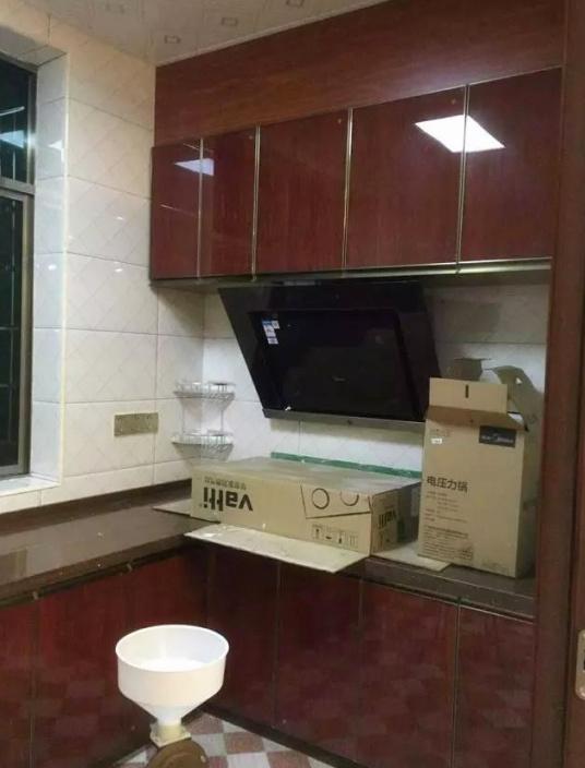 看到厨房我真是无力吐槽了,浅色瓷砖配上深色橱柜,很明显的突兀感