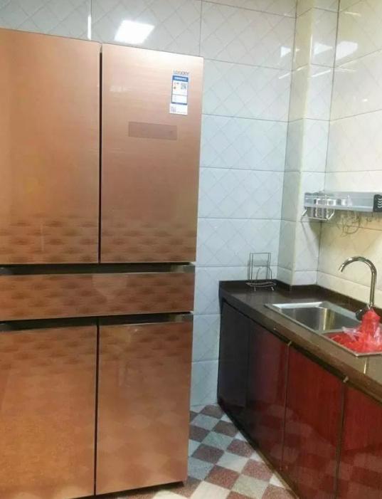 土豪金的冰箱,整个厨房的色彩就跟东拼西凑似的