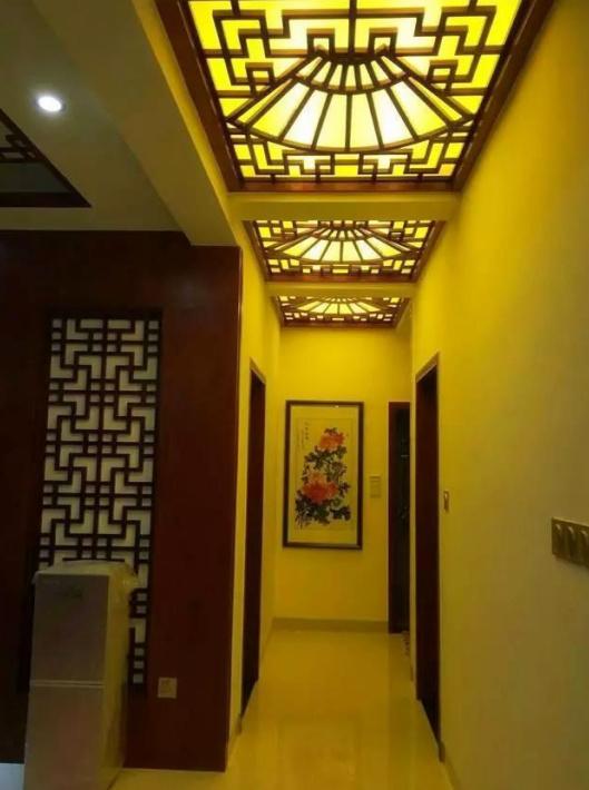 走廊吊顶开灯之后很漂亮,但这真不是我喜欢的风格,我喜欢时尚现代的风格
