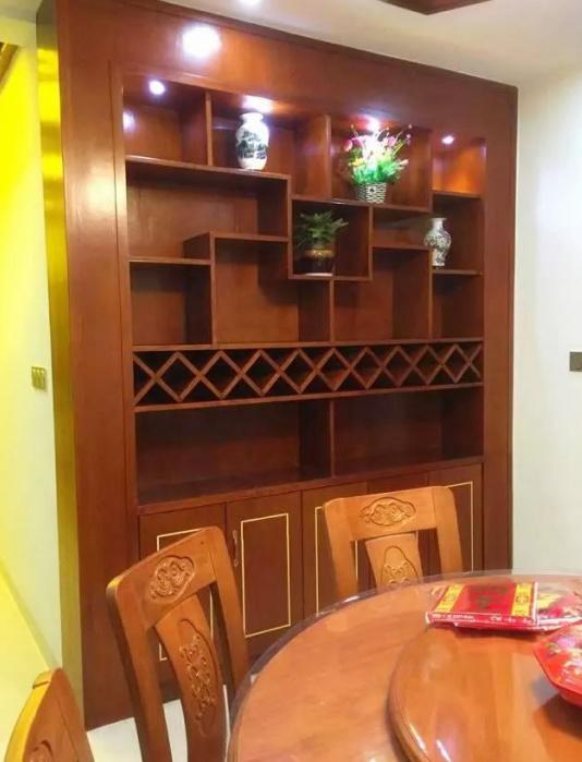 餐桌旁边有个大酒柜,仍然是深色的,公婆年纪也并不是很大,怎么就对这种颜色情有独钟呢?