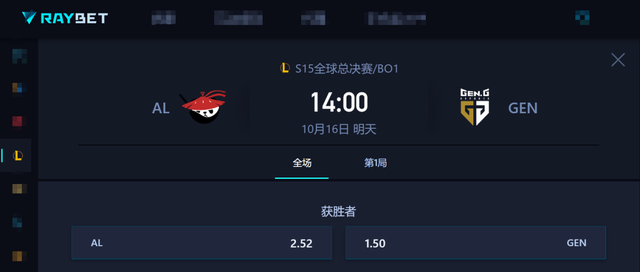 在今年LCK他们也曾输给过KT掉入败者组,Canyon今年状态处于低谷,加上世界赛GEN容易迷失的惯例,在BO1的赛制下AL不是没有获胜的机会。不过从专业电竞预测平台的数据来看,GEN还是以1.50相比AL更受看好,确实他们的纸面实力要更强一些。