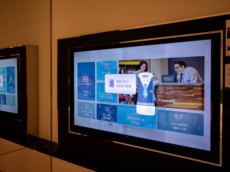 TCL将客房电视升级为智能交互中枢,整合设备控制、服务呼叫、自助问答等功能,彻底改变传统依赖前台与人工的客房服务模式。在这一模式下:自助入住/退房终端接管了大部分基础登记工作,大幅减轻前台压力;通过内置酒店知识库,客房电视能直接响应“酒店餐厅在哪里”等常规问询,住客无需每次都致电前台;而当住客提出“请送毛巾”等送物需求时,系统会联动机器人执行,配送进度实时显示于电视屏幕,无需人工跟进查询。