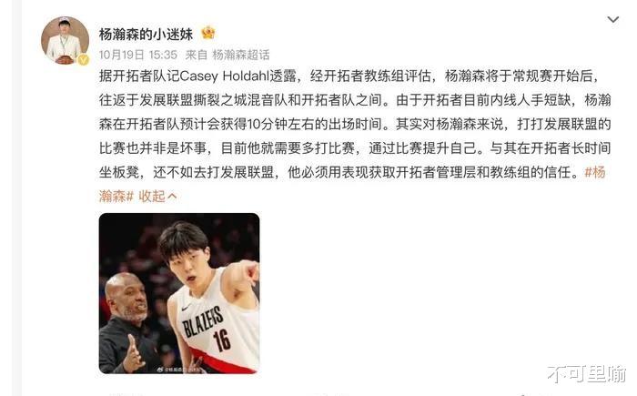 开拓者应该要在十场常规赛后才决定是不是正式下放他。这段时间杨瀚森得赶紧调整,不然真被送去G联赛就麻烦了。那边比赛质量低,但锻炼机会更多。现在看他能不能抓住这十多天,在防守和力量上补短板。