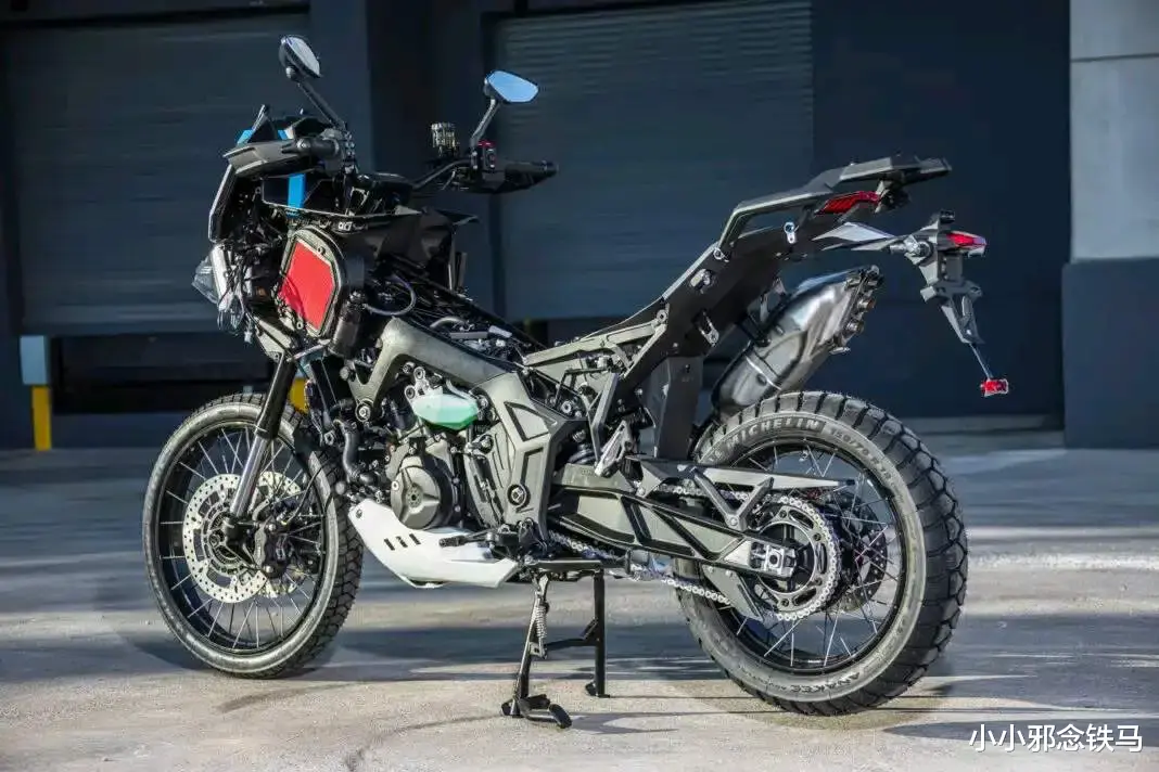 轮毂为辐条式真空胎,前轮尺寸为21英寸,后轮为18英寸,这突显了它的冒险特质,并且可以放心使用无内胎轮胎。标准配置的轮胎是米其林Anakee Adventure,这是一款因其多功能性而备受好评的混合轮胎。